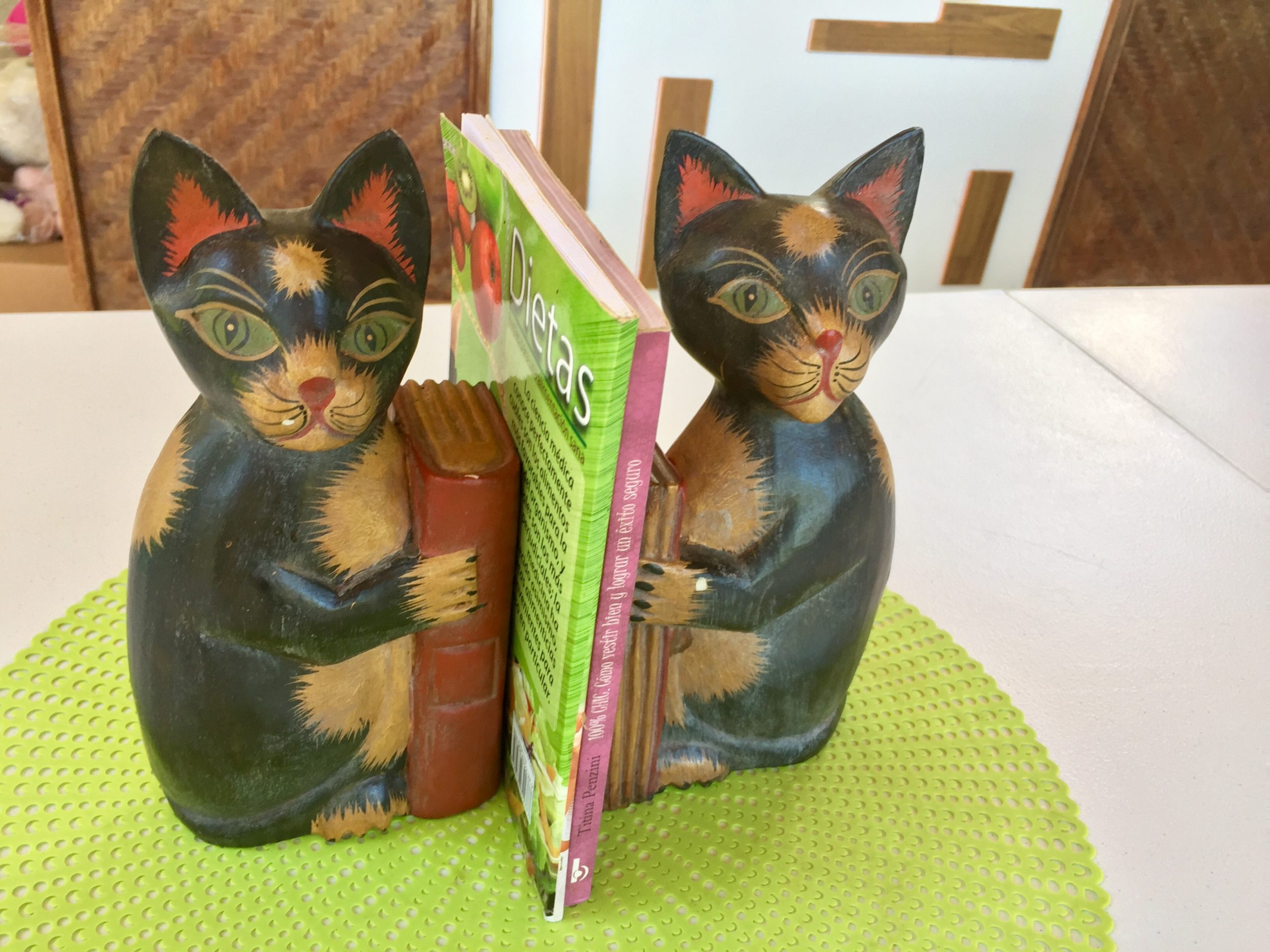 Porta Libro de cerámica con forma de gato, usado en buenas condiciones.
